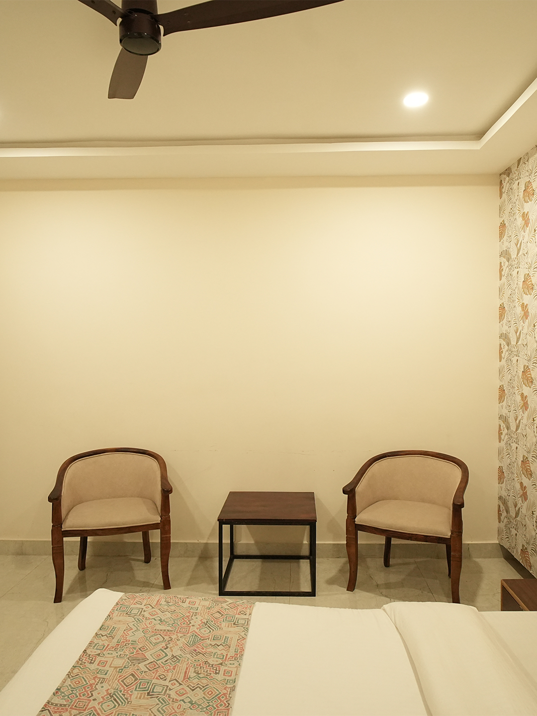 Experience regal Marwar living with a majestic king-size four-poster bed, heritage-inspired decor, a cozy living area, and a private patio that echoes the tranquility of the Blue City.